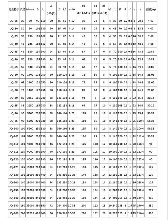 夾殼聯(lián)軸器的規(guī)格: